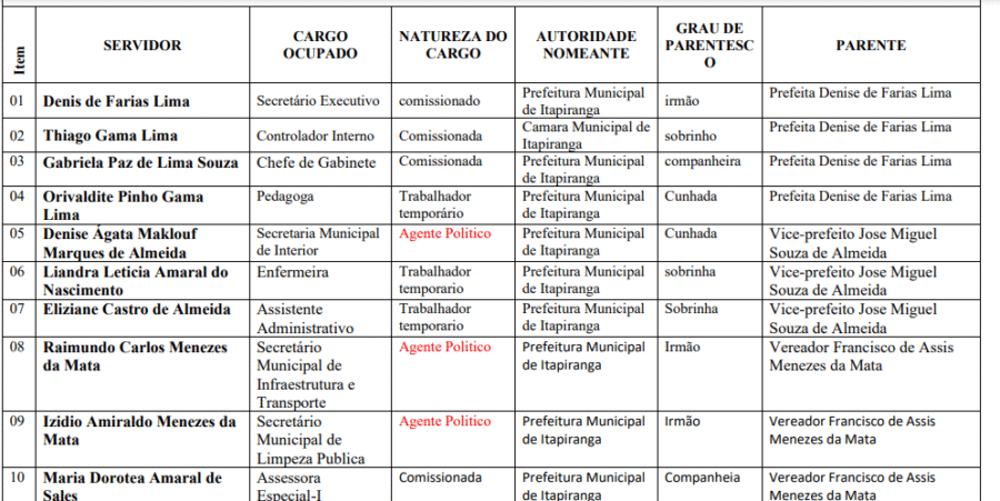 Conforme a denúncia a Srª prefeita trata os cargos comissionados, com se fossem pessoalmente dela, como se o interesse do povo daquele município tivessem sido olocados em segundo plano de sua gestão.