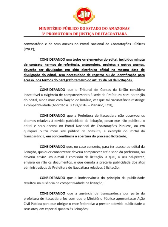 A Prefeitura de Itacoatiara tem 72h para apresentar sua defesa ao Ministério Público do Amazonas (MP-AM), que recomendou ao prefeito Mário Abrahim, que suspenda ou anule as licitações e os contratos firmados por ele, que apresentem qualquer irregularidade.