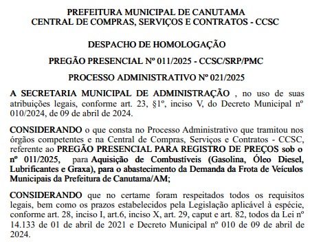 O que chama atenção nesta contratação é que o prefeito não especifica a quantidade de veículos que serão atendidos no contrato, e o período que a empresa deve atender as demandas da Prefeitura de Canutama.