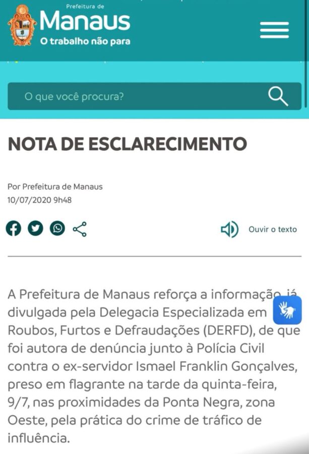 “O caso específico, que culminou na prisão dele, teve início quando Ismael se apresentou como servidor municipal e cobrou a quantia de R$ 2,5 mil de uma mulher que queria a atualização da inscrição pública perante a Subsecretaria de Habitação Fundiária de Manaus. O valor foi cobrado para que o infrator estabelecesse contato com servidores do órgão, e, dessa forma, agilizasse os trâmites burocráticos”, afirmou.