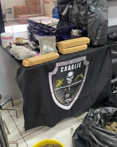 Durante a operação, foram localizados 84,4 quilos de substância semelhante à maconha, divididos em diferentes formatos de armazenamento estavam 32 tabletes totalizando 24,350 kg, dois sacos plásticos com 20 kg cada, um saco com 18,750 kg e 14 porções do tipo “dry” pesando 1,3 kg.