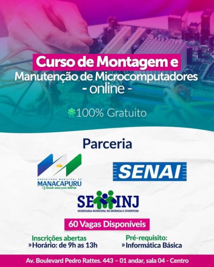 O curso é voltado para Montagem e Manutenção de Microcomputadores e ao todos são oferecidas 60 vagas do curso para o público em geral.
