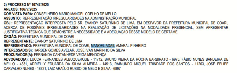 De acordo com a denúncia, são cinco Pregões Presenciais conduzidas pela gestão Adail Pinheiro de maneira física, que estão sob suspeitas de irregularidades por limitação de concorrência e beneficiando empresas próximas ao prefeito.