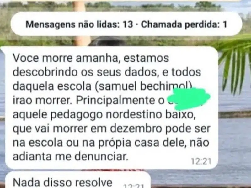Um adolescente de 17 anos, foi apreendido nesta quarta-feira (26), após enviar mensagens ameaçando de morte, colegas de sala e professores, na Escola Estadual Samuel Benchimol, localizada no bairro Monte das Oliveiras, na zona Norte da capital.