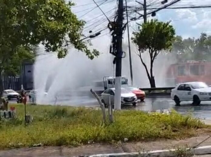 O rompimento de uma adutora de água causou um grande vazamento nesta terça-feira (26/08), na Avenida Cosme Ferreira, bairro do Coroado, zona Leste da capital amazonense.
