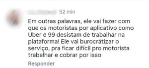 “Ele vai fazer com que motoristas de app parem de trabalhar na plataforma. Vai burocratizar o serviço e cobrar por isso”, disse um internauta.