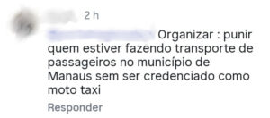 “Esse ‘organizar’ que ele fala é, na verdade, punir quem faz transporte de passageiros sem o credenciamento de mototáxi”, comentou outro.