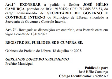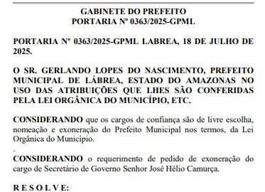 Após a matéria trazida pela redação do Portal Abutre, onde mostra que o secretário de governo da Prefeitura de Lábrea, José Hélio Camurça é acusado de assediar servidoras e de desviar recursos do Fundeb, para beneficiar parentes, o prefeito Gerlando Lopes (PL), enfim tomou coragem e exonerou seu braço forte na prefeitura.