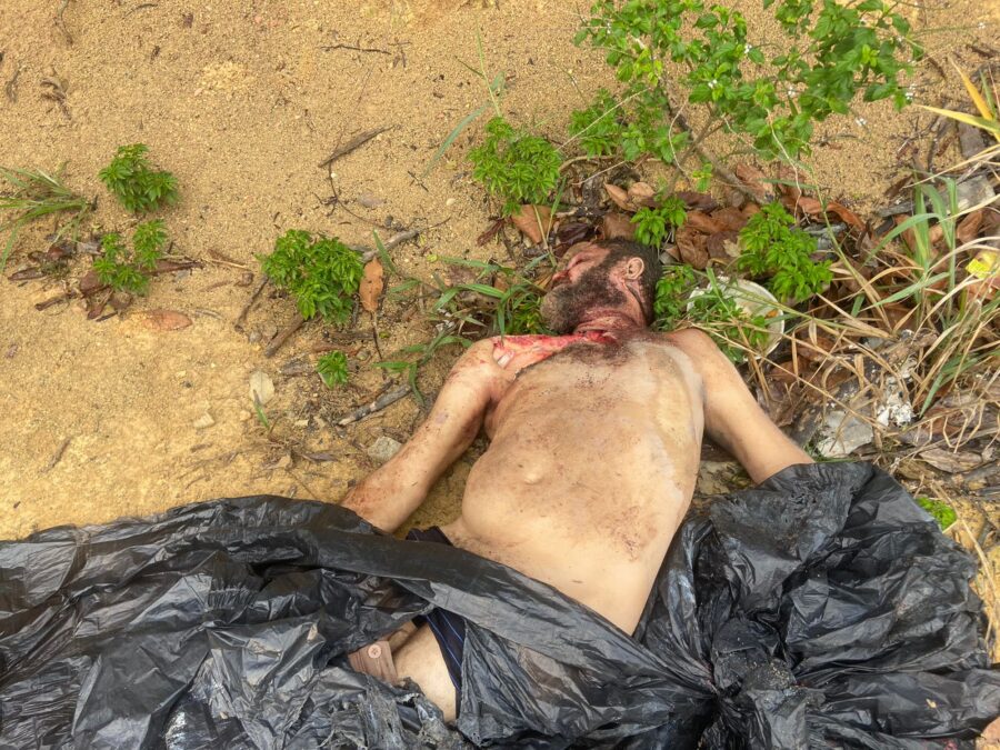 O homem teve seus dedos decepados e tinha profundos golpes de terçados nos braças, tórax e pescoço, como se tivessem tentando decapita-lo. O corpo do homem foi deixado pelo início da manhã no ramal.