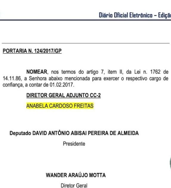 De acordo com os RIFs, as operações financeiras consideradas atípicas passaram a ocorrer após 20 de outubro de 2023, data em que Anabela foi nomeada para função na estrutura de apoio vinculada ao prefeito — conforme publicação no Diário Oficial do Estado nº 35.091.