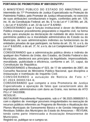 As irregularidades estariam na execução de recursos públicos referentes ao Programa de Revisão e Atualização dos Planos Municipais de Saneamento Básico e de Gestão Integrada de Resíduos Sólidos do Estado do Amazonas (REVSAN), feita pela Associação Amazonense de Municípios.