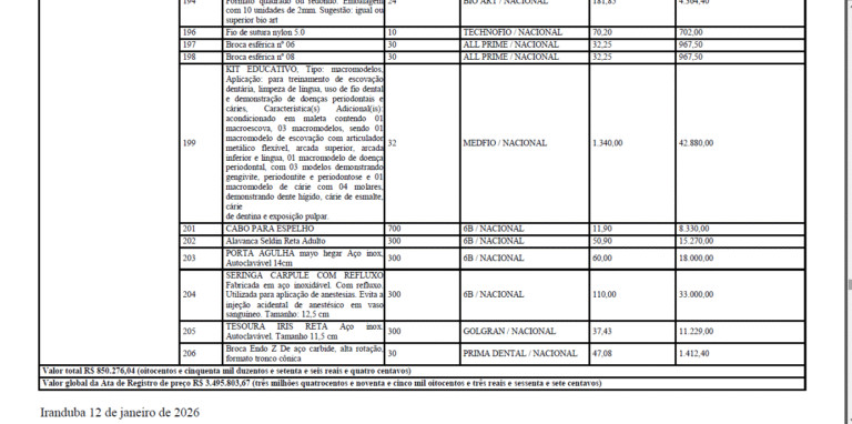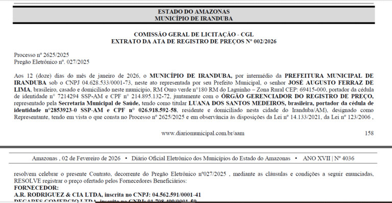 Em meio ao caos hospitalar que vive os moradores de Iranduba, no interior do Amazonas, o prefeito Augusto Ferraz (UB) autorizou a compra milionária de materiais odontológicos e hospitalares, pela Secretaria Municipal de Saúde (Semsa), administrada pela primeira-dama Luana Ferraz.