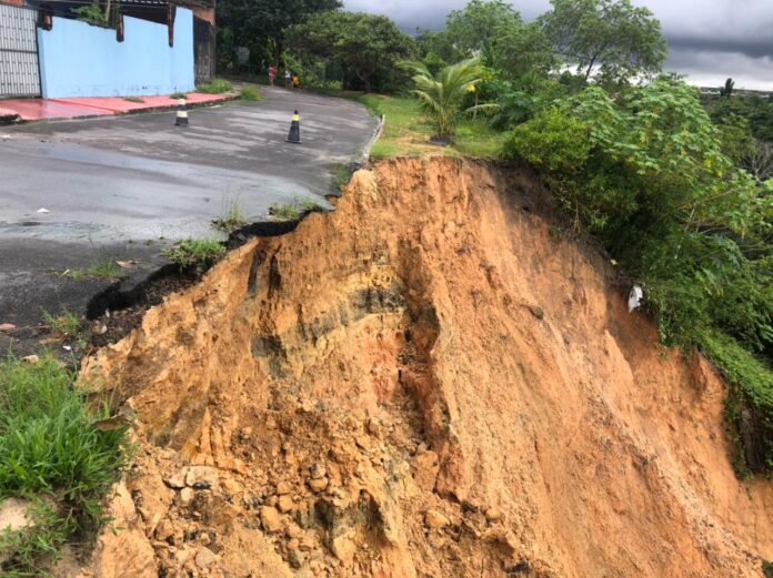 Na manhã desta segunda-feira (30), moradores da rua Siri com Oriço do Mar, no conjunto Lula, no bairro Distrito Industrial 2, na Zona Leste de Manaus, ficaram assustados com o desabamento de terra que ameaça a via e residências da localidade.