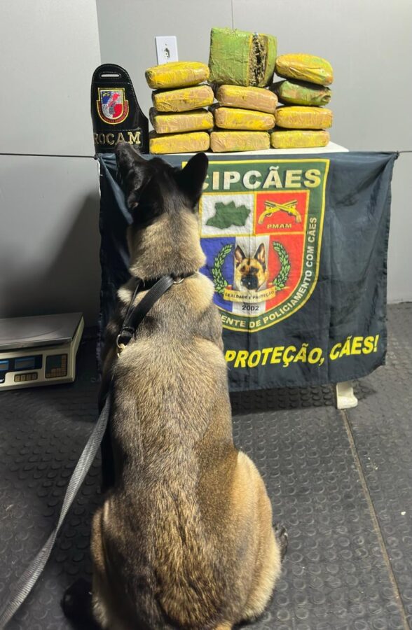 A abordagem foi realizada pelas equipes da PMAM, coordenadas pela Secretaria de Segurança Pública (SSP-AM), por volta das 3h. Durante a ação, a cadela policial Athena sinalizou a suspeita de conter drogas dentro de dois sacos.