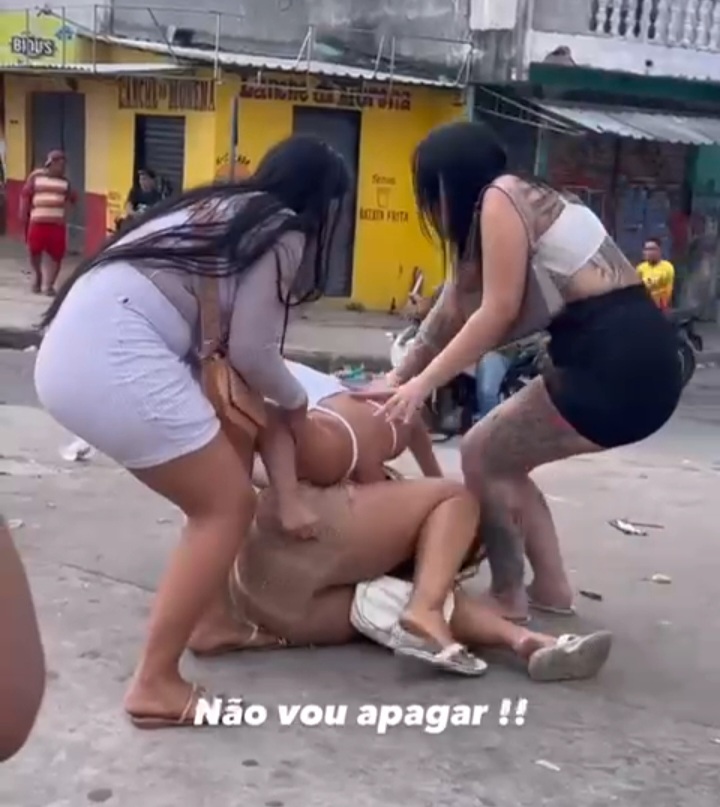 Populares que acompanhavam a confusão, registraram o momento em que as mulheres se ‘engalfinhavam’ por conta de ciúmes de um homem.