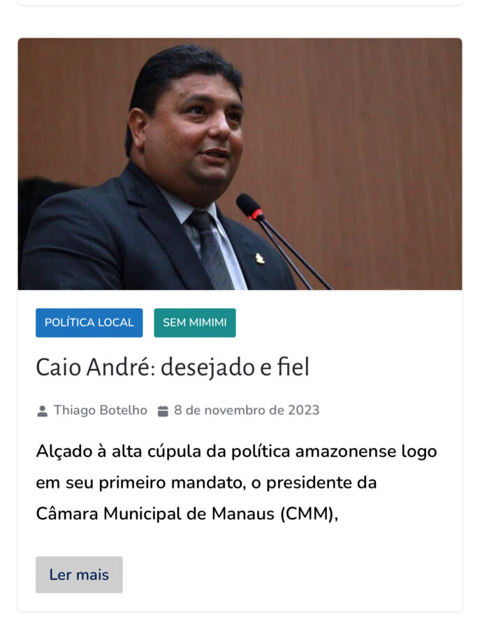 O jornalista, Thiago Botelho, dono do “Blog do Botelho” é funcionário comissionado da Câmara Municipal de Manaus (CMM), nomeado pelo presidente Caio André e recebe todos os meses R$15 mil vindo do dinheiro público, para criticar a gestão do executivo municipal.