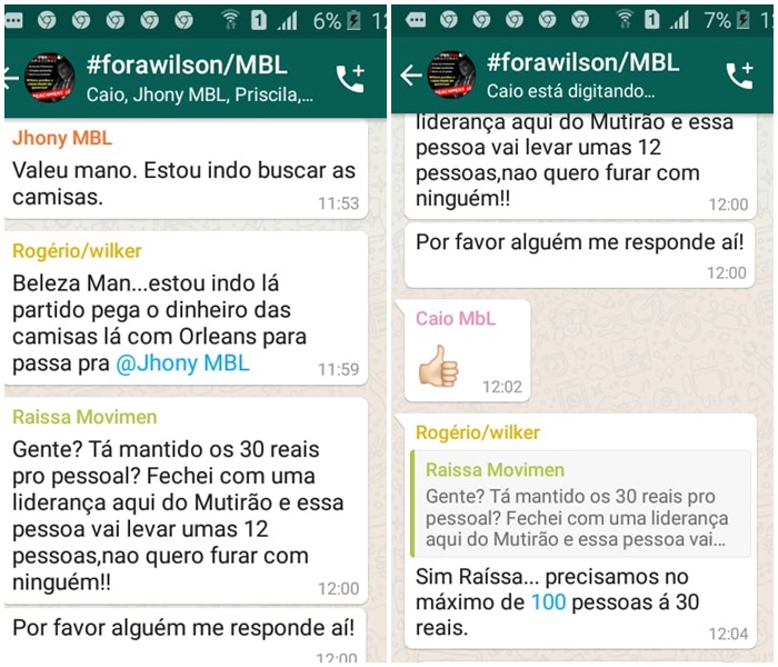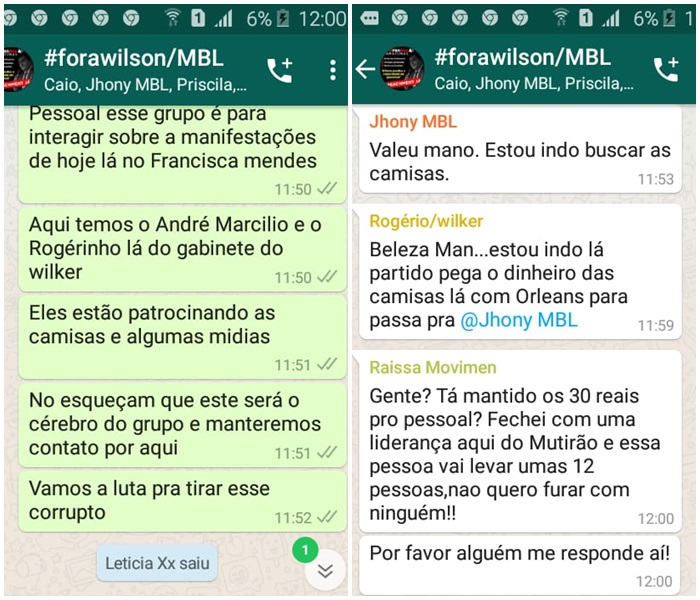 Os assessores de Wilker criaram um grupo de whatsapp, com apoio do MBL, movimento que se diz defensor da moral e dos bons costumes e de combate à corrupção, e passaram os últimos dias negociando com pessoas que se dizem líderes no Mutirão, bairro próximo ao hospital, para levarem pessoas com a missão de fazerem volume na pseuda manifestação.