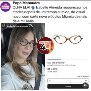 Após o escândalo a primeira dama de Manaus sumiu literalmente, mas do nada ela aparece ostentando um óculos de luxo com o valor de 4 mil reais, não se sabe se ela é bem assessorada ou não, os seus assessores tinham que comentar com ela sobre as dificuldades do povo em Manaus, chuvas, deslizamentos de terras, mortes, fome, desemprego etc… e com essas atitudes a imagem dela é do esposo que já não anda bem se afunda de vez. iai o que acharam da volta da primeira dama de Manaus em grande estilo?