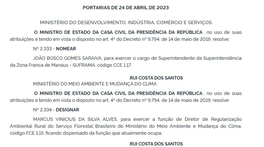 O nome do ex-deputado Bosco Saraiva foi oficializado nesta terça-feira (25), no Diário Oficial da União (DOU), como Superintendente da Zona Franca de Manaus (Suframa).