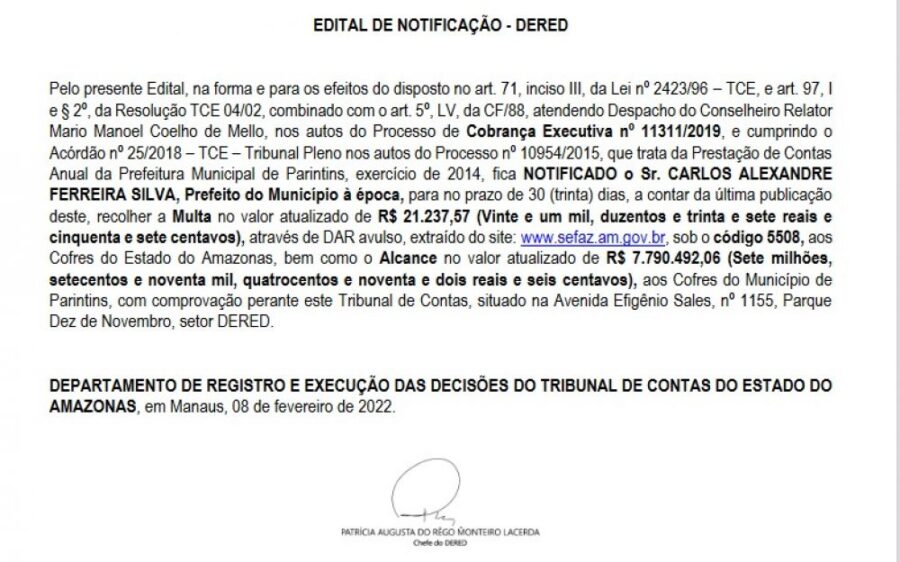 O ex-prefeito de Parintins já foi condenado pela Justiça Federal em 2022, por crime de responsabilidade por deixar de prestar contas do Fundo Nacional de Desenvolvimento de Educação (FNDE) em 2014 e 2015.