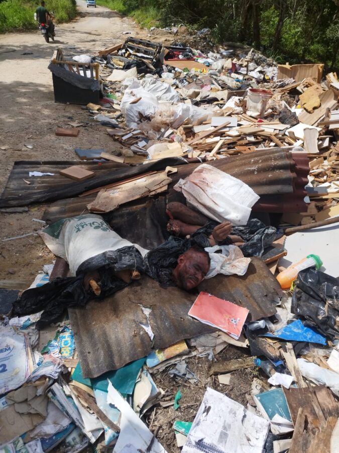Os moradores acionaram a polícia, e enquanto aguardavam a chegada da viatura, brincavam com a cena grotesca, sem demonstrar qualquer repulsa pela barbárie. “Esse perdeu a cabeça” dizia um morador da área.