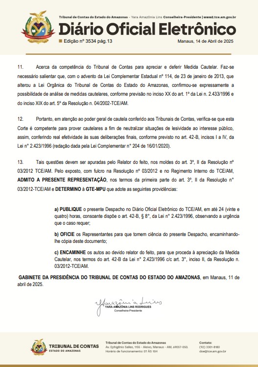 O pedido foi admitido pelos conselheiros do Tribunal de Contas do Estado do Amazonas e o prefeito Jander Paes de Almeida deve ser notificado sobre a decisão e, deve cancelar a contratação de Pablo do Arrocha por R$ 900 mil reais.