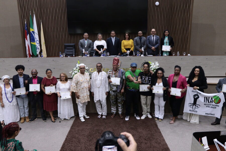 A Câmara Municipal de Manaus (CMM) homenageou, na tarde desta segunda-feira (21), instituições e personalidades em alusão ao dia 20 de Novembro, Dia da Consciência Negra. De propositura do vereador Caio André (Podemos), presidente da CMM, a homenagem contou, ainda, com a participação dos vereadores Lissandro Breval e Alonso Oliveira (Avante), professora Jacqueline (União Brasil) e Rosivaldo Cordovil (PSDB).