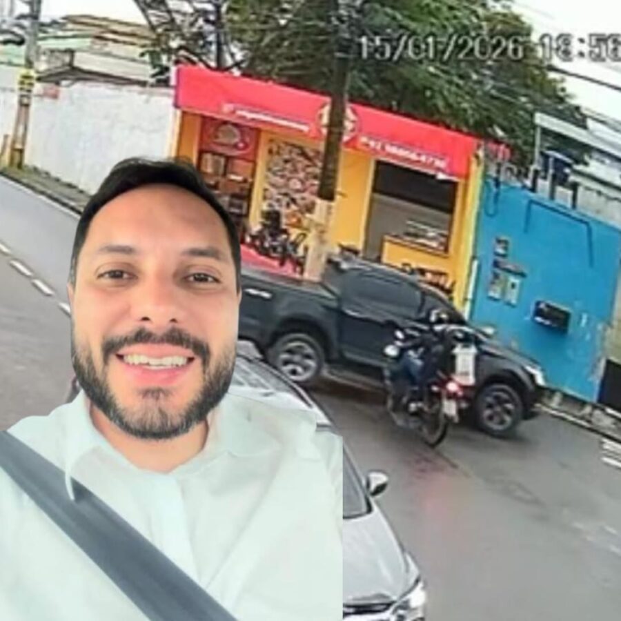 Imagens de câmeras de segurança reforçam a gravidade do acidente de trânsito envolvendo um veículo alugado pela Secretaria Municipal de Educação (SEMED) e um motoboy, ocorrido em um cruzamento de intenso movimento em Manaus. As gravações mostram que uma caminhonete S10 azul atravessa a via em alta velocidade, saindo de um cruzamento sem reduzir, momento em que acontece a colisão.