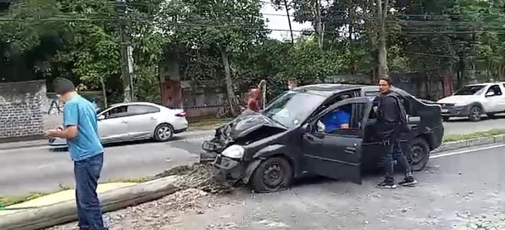 Manaus- Na manhã desta terça-feira (9), um carro modelo Logan de cor preta colidiu com um poste ao perder o controle na Avenida Cosme Ferreira, bairro Coroado nas mediações do conjunto Tiradentes.