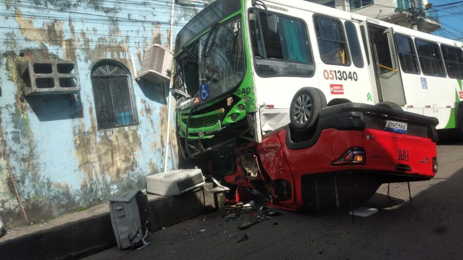 Com o impacto, o veículo de passeio foi parar embaixo do ônibus e capotou. O motorista do carro ficou com as pernas presas nas ferragens. Não há detalhes sobre seu estado de saúde até o momento.