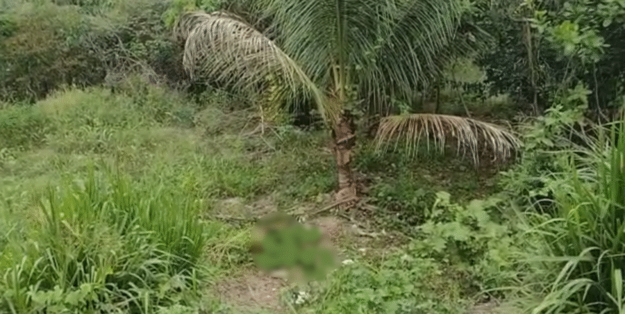 Possivelmente a vítima tenha sido morta em um outro local e desovado em uma rede na área de mata, próximo ao presídio do Puraquequara.