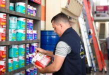 No total, foram encontrados 701 litros de produtos vencidos, entre tintas automotivas, esmaltes à base de água e limpador de ácido