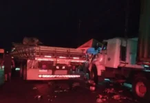 Um grave acidente envolvendo um caminhão e uma carreta deixou um ajudante gravemente ferido na noite desta quarta-feira (8).