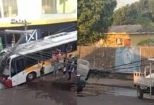 Motorista de ônibus perde o controle e derruba poste em Manacapuru; veja vídeo