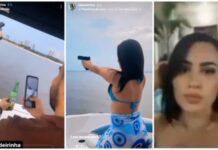 Blindada ostenta em lancha e brinca com arma de fogo; veja vídeo