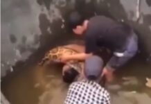 Homem é salvo de abraço mortal de sucuri ao cair em poço; veja vídeo