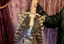 Bizarro: homem transforma esqueleto de parente morto em guitarra