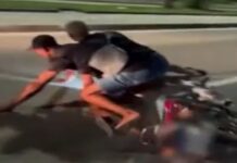 VÍDEO: Jovens quase perdem a cabeça em acidente ao dar “grau” na moto e...