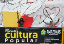 Obra de arte gigante transforma fachada do Bumbódromo de Parintins