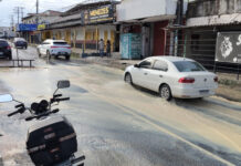 Adutora rompe e deixa trânsito caótico na Avenida Cosme Ferreira