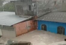 Mulher chora e improvisa local para salvar filho autista durante alagamento na zona Leste...