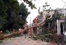 Árvore cai em casa durante vendaval em Manaus