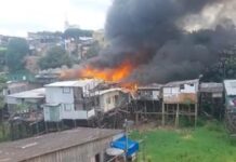 Pelo menos 30 casas foram consumidas pelo fogo no Bairro do Céu em Manaus