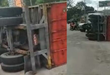 Uma carreta tombou no início da tarde desta quarta-feira (29), na Avenida Buriti, bairro do Distrito Industrial, zona Sul da capital amazonense.