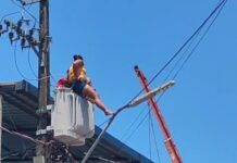 VÍDEO: Mulher se pendura em poste e precisa ser resgatada pelos Bombeiros no Jorge...