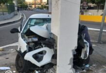Na madrugada desta segunda-feira (8), uma mulher que conduzia um carro, acabou colindido com um poste de energia elétrica e ficou presa às ferragens.