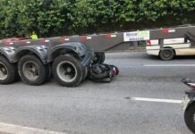 Acidente quase deixa irmãos esmagados por carreta durante em Manaus