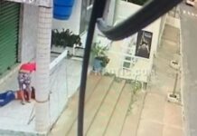 Brasil - Uma câmera de segurança mostra cena bizarra de um homem se fingindo de morto para escapar da morte.