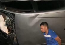 Trio rouba carro, foge e capota o veículo ficando presos nas ferragens