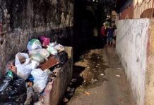 Em meio ao lixo acumulado no igarapé do Mindú, agentes de limpeza encontram c0rp0